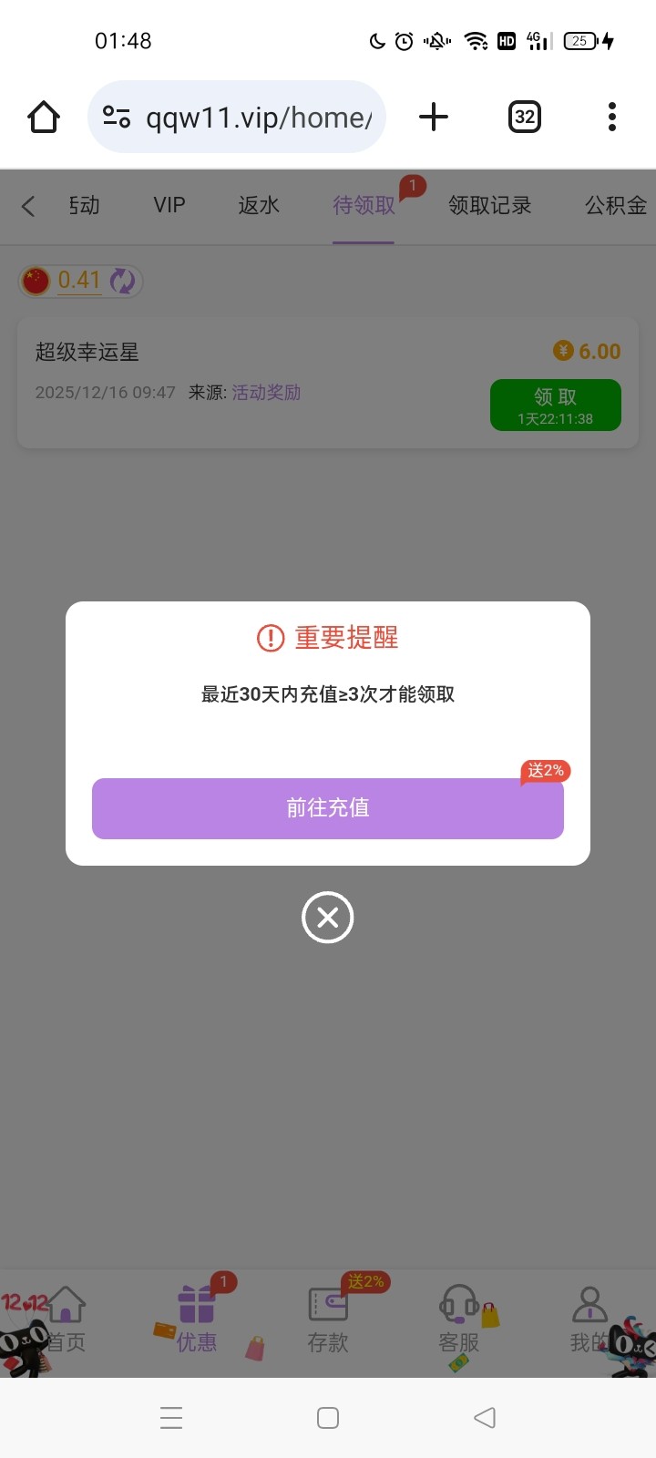 煞笔台 领取特邀彩金要首充 充了50 然后去拉到电子输了 再去领特邀彩金 又说要充200 纯纯骗子台